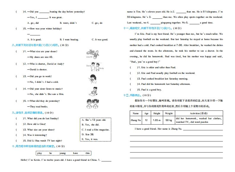 六下人教PEP英语期中试卷小岚7个月前更新关注私信058269六下人教PEP英语期中试卷此内容为付费阅读,请付费后查看云创币 8.99年费会员免费终身会员免费立即购买您当前未登录!建议登陆后购买,可保存购买订单付费阅读已售 52 ——预览已结束,还剩4页未读——开通会员后可免费下载高清完整文档 课程下载: 此处内容已隐藏,请付费后查看 声明 1 本站名称: 云创项目库 2 本站网址:vip.yunchuangku.com 3 本站内容均转载于互联网,仅供大家学习与参考,如有侵权,请联系站长进行删除处理。 4 本站一切资源不代表本站立场,并不代表本站赞同其观点和对其真实性负责。 5 本站一律禁止以任何方式发布或转载任何违法的相关信息,访客发现请向站长举报。 6 本站附件资源、教程等内容如因时效原因失效或不可用,请评论区留言或联系站长及时更新。 © 版权声明本站内容均转载于互联网,并不代表云创项目库立场。如若本站内容侵犯了原著者的合法权益,可联系我们进行处理!THE END六年级英语 喜欢就支持一下吧点赞69 分享QQ空间微博QQ好友海报分享复制链接收藏