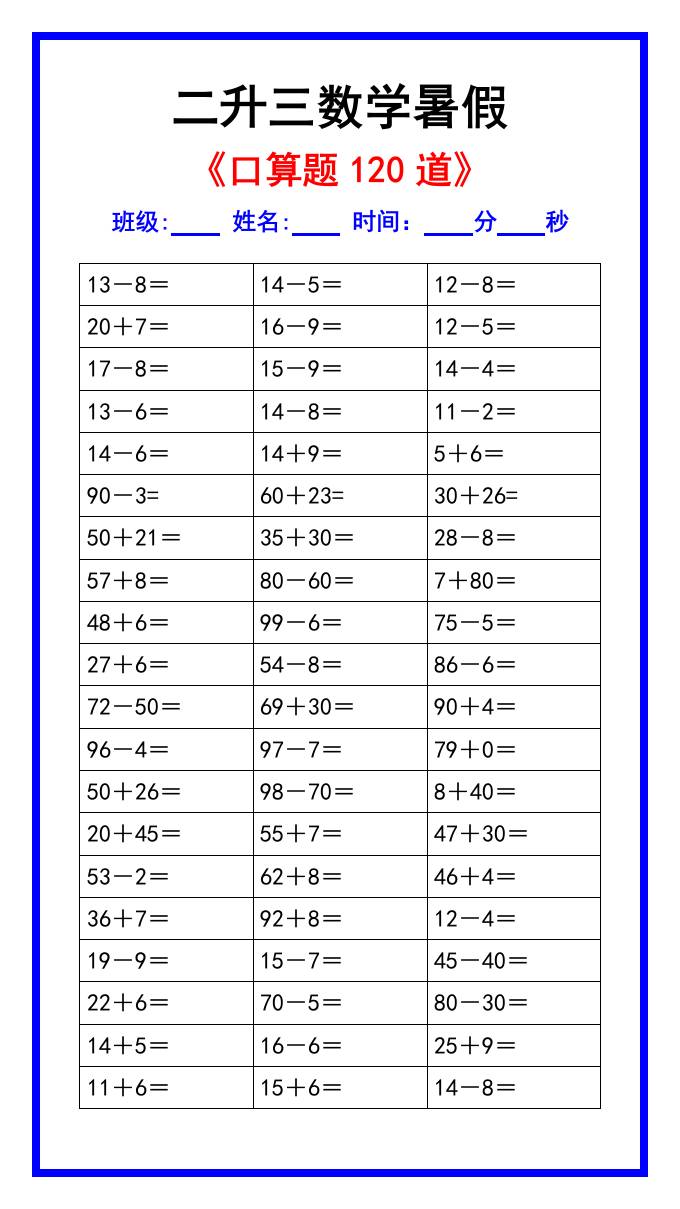 二升三数学暑假《口算练习题120道》汇总-三上数学小岚4个月前更新关注私信0104579二升三数学暑假《口算练习题120道》汇总-三上数学此内容为付费阅读,请付费后查看云创币 6年费会员免费终身会员免费立即购买您当前未登录!建议登陆后购买,可保存购买订单付费阅读已售 45 ——预览已结束,还剩1页未读——开通会员后可免费下载高清完整文档 课程下载: 此处内容已隐藏,请付费后查看 声明 1 本站名称: 云创项目库 2 本站网址:vip.yunchuangku.com 3 本站内容均转载于互联网,仅供大家学习与参考,如有侵权,请联系站长进行删除处理。 4 本站一切资源不代表本站立场,并不代表本站赞同其观点和对其真实性负责。 5 本站一律禁止以任何方式发布或转载任何违法的相关信息,访客发现请向站长举报。 6 本站附件资源、教程等内容如因时效原因失效或不可用,请评论区留言或联系站长及时更新。 © 版权声明本站内容均转载于互联网,并不代表云创项目库立场。如若本站内容侵犯了原著者的合法权益,可联系我们进行处理!THE END三年级数学 喜欢就支持一下吧点赞79 分享QQ空间微博QQ好友海报分享复制链接收藏