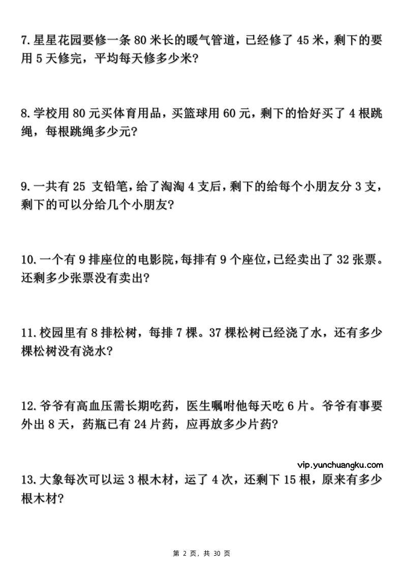 二下数学期末复习混合运算七大类型应用题(含答案30页)小岚3个月前更新关注私信072550二下数学期末复习混合运算七大类型应用题(含答案30页)此内容为付费阅读,请付费后查看云创币 6年费会员免费终身会员免费立即购买您当前未登录!建议登陆后购买,可保存购买订单付费阅读已售 24 ——预览已结束,还剩28页未读——开通会员后可免费下载高清完整文档 课程下载: 此处内容已隐藏,请付费后查看 声明 1 本站名称: 云创项目库 2 本站网址:vip.yunchuangku.com 3 本站内容均转载于互联网,仅供大家学习与参考,如有侵权,请联系站长进行删除处理。 4 本站一切资源不代表本站立场,并不代表本站赞同其观点和对其真实性负责。 5 本站一律禁止以任何方式发布或转载任何违法的相关信息,访客发现请向站长举报。 6 本站附件资源、教程等内容如因时效原因失效或不可用,请评论区留言或联系站长及时更新。 © 版权声明本站内容均转载于互联网,并不代表云创项目库立场。如若本站内容侵犯了原著者的合法权益,可联系我们进行处理!THE END二年级数学 喜欢就支持一下吧点赞50 分享QQ空间微博QQ好友海报分享复制链接收藏
