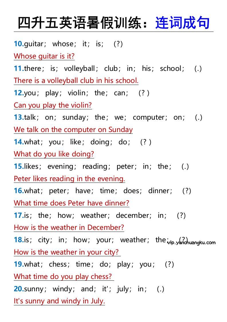 四升五英语暑假训练:连词成句-五上英语小岚4个月前更新关注私信0112076四升五英语暑假训练:连词成句-五上英语此内容为付费阅读,请付费后查看云创币 6年费会员免费终身会员免费立即购买您当前未登录!建议登陆后购买,可保存购买订单付费阅读已售 52 ——预览已结束,还剩1页未读——开通会员后可免费下载高清完整文档 课程下载: 此处内容已隐藏,请付费后查看 声明 1 本站名称: 云创项目库 2 本站网址:vip.yunchuangku.com 3 本站内容均转载于互联网,仅供大家学习与参考,如有侵权,请联系站长进行删除处理。 4 本站一切资源不代表本站立场,并不代表本站赞同其观点和对其真实性负责。 5 本站一律禁止以任何方式发布或转载任何违法的相关信息,访客发现请向站长举报。 6 本站附件资源、教程等内容如因时效原因失效或不可用,请评论区留言或联系站长及时更新。 © 版权声明本站内容均转载于互联网,并不代表云创项目库立场。如若本站内容侵犯了原著者的合法权益,可联系我们进行处理!THE END五年级英语 喜欢就支持一下吧点赞76 分享QQ空间微博QQ好友海报分享复制链接收藏