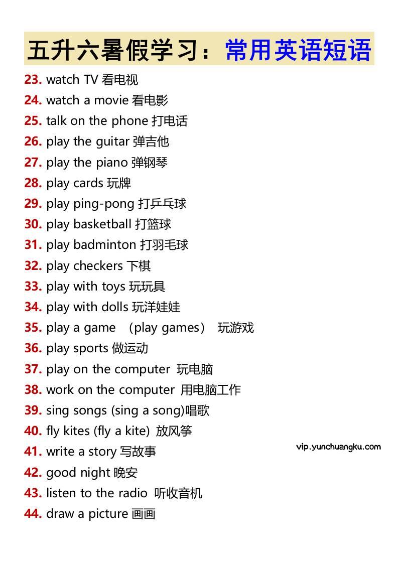 五升六暑假学习:常用英语短语-六上英语小岚4个月前更新关注私信095468五升六暑假学习:常用英语短语-六上英语此内容为付费阅读,请付费后查看云创币 6年费会员免费终身会员免费立即购买您当前未登录!建议登陆后购买,可保存购买订单付费阅读已售 55 ——预览已结束,还剩1页未读——开通会员后可免费下载高清完整文档 课程下载: 此处内容已隐藏,请付费后查看 声明 1 本站名称: 云创项目库 2 本站网址:vip.yunchuangku.com 3 本站内容均转载于互联网,仅供大家学习与参考,如有侵权,请联系站长进行删除处理。 4 本站一切资源不代表本站立场,并不代表本站赞同其观点和对其真实性负责。 5 本站一律禁止以任何方式发布或转载任何违法的相关信息,访客发现请向站长举报。 6 本站附件资源、教程等内容如因时效原因失效或不可用,请评论区留言或联系站长及时更新。 © 版权声明本站内容均转载于互联网,并不代表云创项目库立场。如若本站内容侵犯了原著者的合法权益,可联系我们进行处理!THE END六年级英语 喜欢就支持一下吧点赞68 分享QQ空间微博QQ好友海报分享复制链接收藏