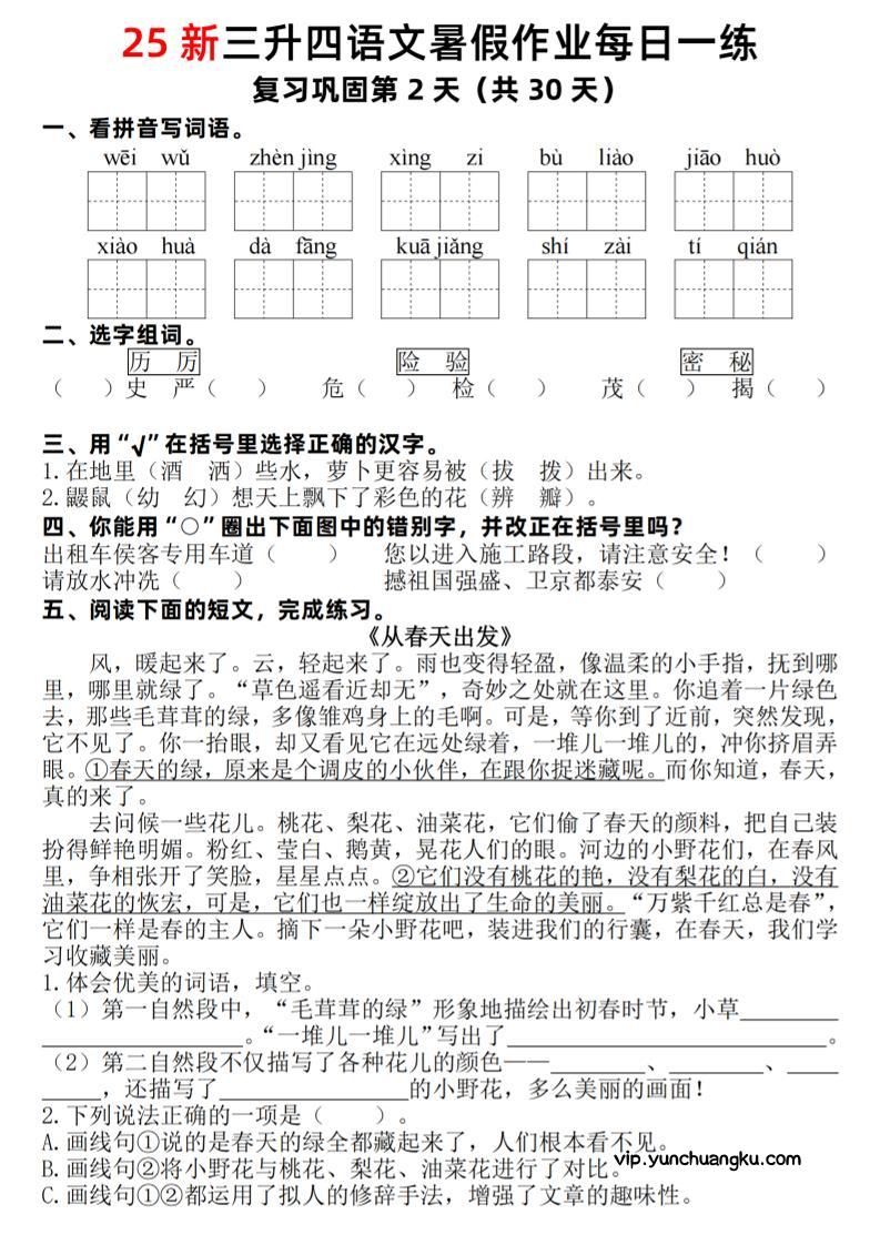 25新三升四语文暑假作业每日一练30天(复习+预习)含答案54页-四上语文小岚4个月前更新关注私信010546625新三升四语文暑假作业每日一练30天(复习+预习)含答案54页-四上语文此内容为付费阅读,请付费后查看云创币 6年费会员免费终身会员免费立即购买您当前未登录!建议登陆后购买,可保存购买订单付费阅读已售 55 ——预览已结束,还剩52页未读——开通会员后可免费下载高清完整文档 课程下载: 此处内容已隐藏,请付费后查看 声明 1 本站名称: 云创项目库 2 本站网址:vip.yunchuangku.com 3 本站内容均转载于互联网,仅供大家学习与参考,如有侵权,请联系站长进行删除处理。 4 本站一切资源不代表本站立场,并不代表本站赞同其观点和对其真实性负责。 5 本站一律禁止以任何方式发布或转载任何违法的相关信息,访客发现请向站长举报。 6 本站附件资源、教程等内容如因时效原因失效或不可用,请评论区留言或联系站长及时更新。 © 版权声明本站内容均转载于互联网,并不代表云创项目库立场。如若本站内容侵犯了原著者的合法权益,可联系我们进行处理!THE END四年级语文 喜欢就支持一下吧点赞66 分享QQ空间微博QQ好友海报分享复制链接收藏