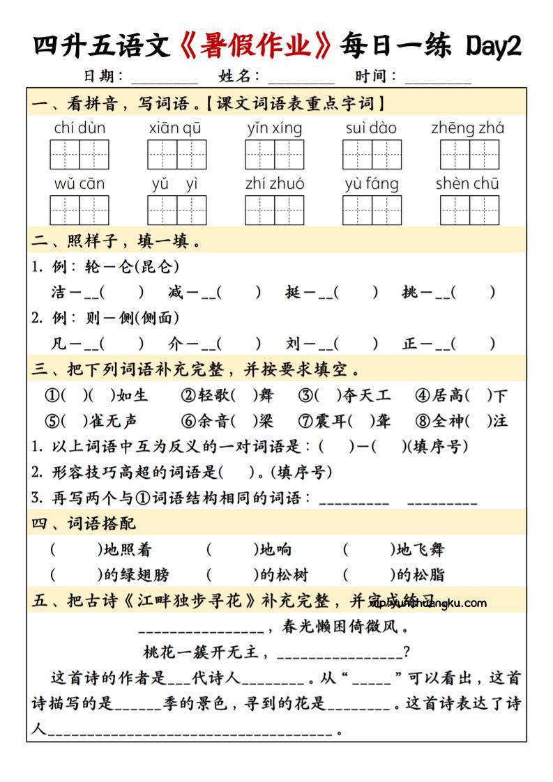 四升五语文暑假作业每日一练共30天-五上语文小岚4个月前更新关注私信091663四升五语文暑假作业每日一练共30天-五上语文此内容为付费阅读,请付费后查看云创币 6年费会员免费终身会员免费立即购买您当前未登录!建议登陆后购买,可保存购买订单付费阅读已售 43 ——预览已结束,还剩17页未读——开通会员后可免费下载高清完整文档 课程下载: 此处内容已隐藏,请付费后查看 声明 1 本站名称: 云创项目库 2 本站网址:vip.yunchuangku.com 3 本站内容均转载于互联网,仅供大家学习与参考,如有侵权,请联系站长进行删除处理。 4 本站一切资源不代表本站立场,并不代表本站赞同其观点和对其真实性负责。 5 本站一律禁止以任何方式发布或转载任何违法的相关信息,访客发现请向站长举报。 6 本站附件资源、教程等内容如因时效原因失效或不可用,请评论区留言或联系站长及时更新。 © 版权声明本站内容均转载于互联网,并不代表云创项目库立场。如若本站内容侵犯了原著者的合法权益,可联系我们进行处理!THE END五年级语文 喜欢就支持一下吧点赞63 分享QQ空间微博QQ好友海报分享复制链接收藏