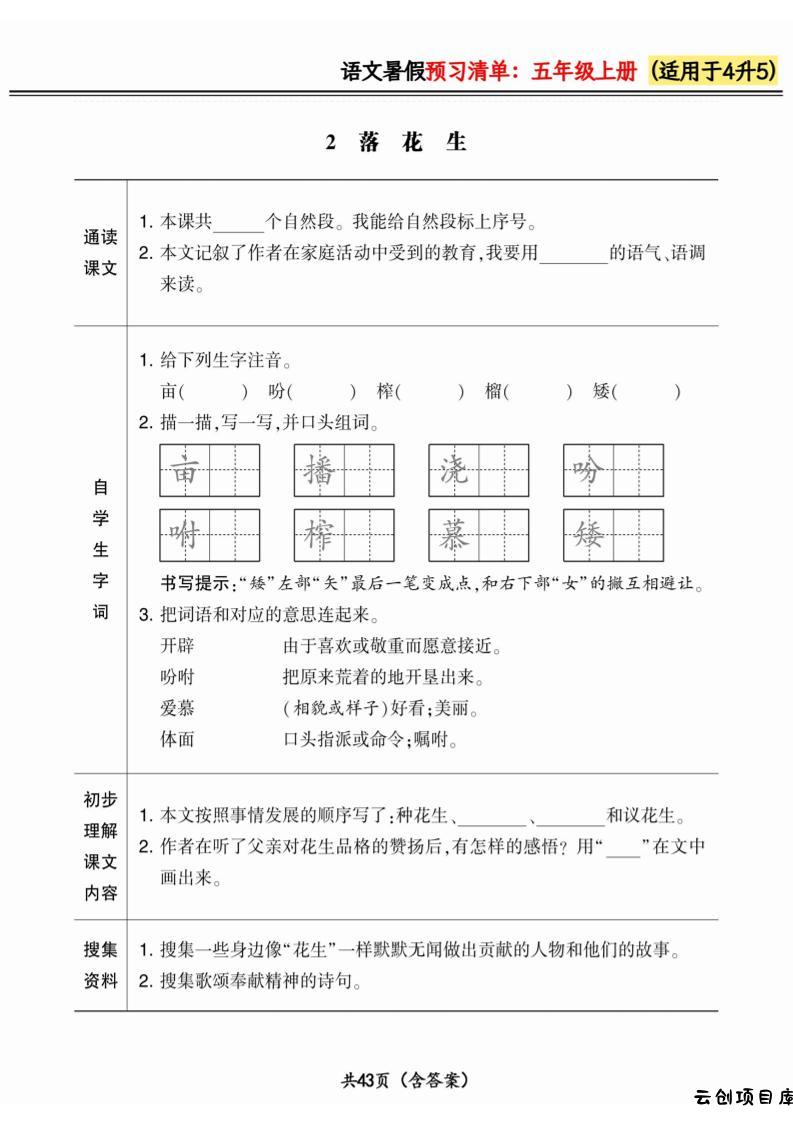 四升五小学语文《暑假预习清单》最新版-五上语文小岚4个月前更新关注私信0110567四升五小学语文《暑假预习清单》最新版-五上语文此内容为付费阅读,请付费后查看云创币 6年费会员免费终身会员免费立即购买您当前未登录!建议登陆后购买,可保存购买订单付费阅读已售 54 ——预览已结束,还剩42页未读——开通会员后可免费下载高清完整文档 课程下载: 此处内容已隐藏,请付费后查看 声明 1 本站名称: 云创项目库 2 本站网址:vip.yunchuangku.com 3 本站内容均转载于互联网,仅供大家学习与参考,如有侵权,请联系站长进行删除处理。 4 本站一切资源不代表本站立场,并不代表本站赞同其观点和对其真实性负责。 5 本站一律禁止以任何方式发布或转载任何违法的相关信息,访客发现请向站长举报。 6 本站附件资源、教程等内容如因时效原因失效或不可用,请评论区留言或联系站长及时更新。 © 版权声明本站内容均转载于互联网,并不代表云创项目库立场。如若本站内容侵犯了原著者的合法权益,可联系我们进行处理!THE END五年级语文 喜欢就支持一下吧点赞67 分享QQ空间微博QQ好友海报分享复制链接收藏