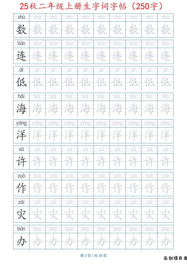 25秋二年级上册生字词字帖(100字)带拼音版-二上语文小岚4个月前更新关注私信09695825秋二年级上册生字词字帖(100字)带拼音版-二上语文此内容为付费阅读,请付费后查看云创币 6年费会员免费终身会员免费立即购买您当前未登录!建议登陆后购买,可保存购买订单付费阅读已售 55 ——预览已结束,还剩26页未读——开通会员后可免费下载高清完整文档 课程下载: 此处内容已隐藏,请付费后查看 声明 1 本站名称: 云创项目库 2 本站网址:vip.yunchuangku.com 3 本站内容均转载于互联网,仅供大家学习与参考,如有侵权,请联系站长进行删除处理。 4 本站一切资源不代表本站立场,并不代表本站赞同其观点和对其真实性负责。 5 本站一律禁止以任何方式发布或转载任何违法的相关信息,访客发现请向站长举报。 6 本站附件资源、教程等内容如因时效原因失效或不可用,请评论区留言或联系站长及时更新。 © 版权声明本站内容均转载于互联网,并不代表云创项目库立场。如若本站内容侵犯了原著者的合法权益,可联系我们进行处理!THE END二年级语文 喜欢就支持一下吧点赞58 分享QQ空间微博QQ好友海报分享复制链接收藏