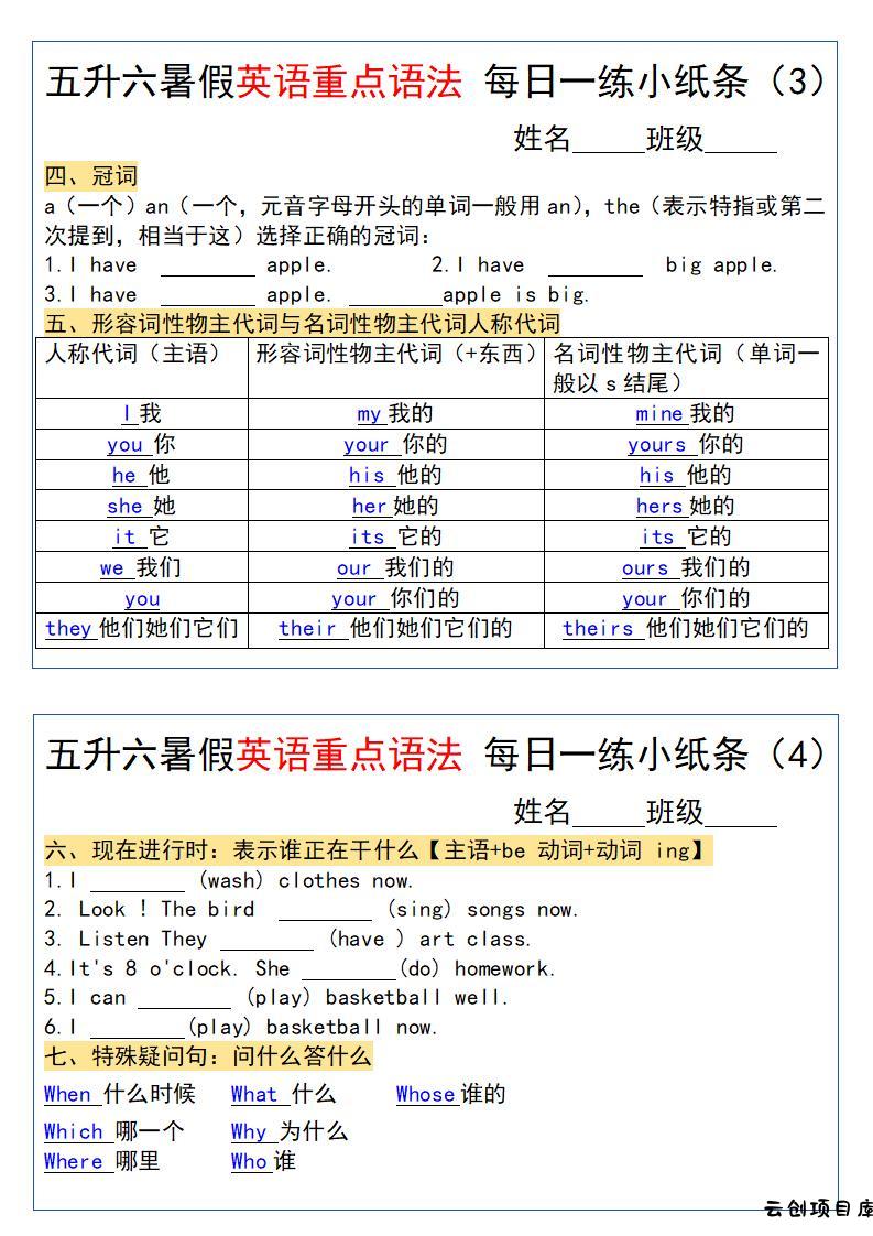五升六暑假英语重点语法每日一练小纸条-六上英语小岚4个月前更新关注私信087262五升六暑假英语重点语法每日一练小纸条-六上英语此内容为付费阅读,请付费后查看云创币 6年费会员免费终身会员免费立即购买您当前未登录!建议登陆后购买,可保存购买订单付费阅读已售 41 ——预览已结束,还剩7页未读——开通会员后可免费下载高清完整文档 课程下载: 此处内容已隐藏,请付费后查看 声明 1 本站名称: 云创项目库 2 本站网址:vip.yunchuangku.com 3 本站内容均转载于互联网,仅供大家学习与参考,如有侵权,请联系站长进行删除处理。 4 本站一切资源不代表本站立场,并不代表本站赞同其观点和对其真实性负责。 5 本站一律禁止以任何方式发布或转载任何违法的相关信息,访客发现请向站长举报。 6 本站附件资源、教程等内容如因时效原因失效或不可用,请评论区留言或联系站长及时更新。 © 版权声明本站内容均转载于互联网,并不代表云创项目库立场。如若本站内容侵犯了原著者的合法权益,可联系我们进行处理!THE END六年级英语 喜欢就支持一下吧点赞62 分享QQ空间微博QQ好友海报分享复制链接收藏