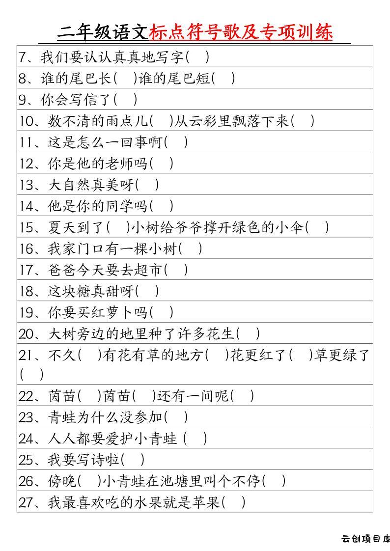 二年级语文标点符号歌及专项训练(4页)小岚4个月前更新关注私信090170二年级语文标点符号歌及专项训练(4页)此内容为付费阅读,请付费后查看云创币 6年费会员免费终身会员免费立即购买您当前未登录!建议登陆后购买,可保存购买订单付费阅读已售 41 ——预览已结束,还剩2页未读——开通会员后可免费下载高清完整文档 课程下载: 此处内容已隐藏,请付费后查看 声明 1 本站名称: 云创项目库 2 本站网址:vip.yunchuangku.com 3 本站内容均转载于互联网,仅供大家学习与参考,如有侵权,请联系站长进行删除处理。 4 本站一切资源不代表本站立场,并不代表本站赞同其观点和对其真实性负责。 5 本站一律禁止以任何方式发布或转载任何违法的相关信息,访客发现请向站长举报。 6 本站附件资源、教程等内容如因时效原因失效或不可用,请评论区留言或联系站长及时更新。 © 版权声明本站内容均转载于互联网,并不代表云创项目库立场。如若本站内容侵犯了原著者的合法权益,可联系我们进行处理!THE END二年级语文 喜欢就支持一下吧点赞70 分享QQ空间微博QQ好友海报分享复制链接收藏