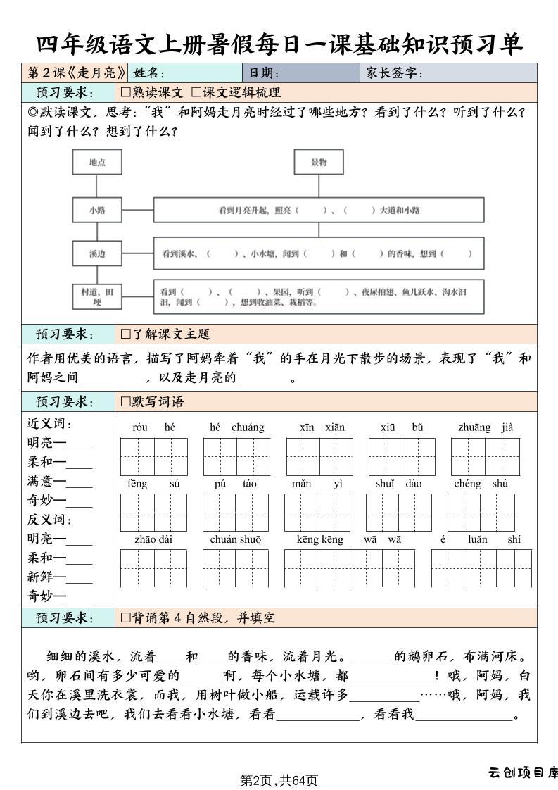 四上语文暑假每日一课基础知识预习单(含答案64页)小岚4个月前更新关注私信085162四上语文暑假每日一课基础知识预习单(含答案64页)此内容为付费阅读,请付费后查看云创币 6年费会员免费终身会员免费立即购买您当前未登录!建议登陆后购买,可保存购买订单付费阅读已售 41 ——预览已结束,还剩62页未读——开通会员后可免费下载高清完整文档 课程下载: 此处内容已隐藏,请付费后查看 声明 1 本站名称: 云创项目库 2 本站网址:vip.yunchuangku.com 3 本站内容均转载于互联网,仅供大家学习与参考,如有侵权,请联系站长进行删除处理。 4 本站一切资源不代表本站立场,并不代表本站赞同其观点和对其真实性负责。 5 本站一律禁止以任何方式发布或转载任何违法的相关信息,访客发现请向站长举报。 6 本站附件资源、教程等内容如因时效原因失效或不可用,请评论区留言或联系站长及时更新。 © 版权声明本站内容均转载于互联网,并不代表云创项目库立场。如若本站内容侵犯了原著者的合法权益,可联系我们进行处理!THE END四年级语文 喜欢就支持一下吧点赞62 分享QQ空间微博QQ好友海报分享复制链接收藏