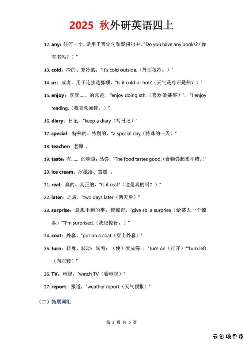 2025秋外研英语四上课堂笔记Unit_3小岚4个月前更新关注私信01006722025秋外研英语四上课堂笔记Unit_3此内容为付费阅读,请付费后查看云创币 6年费会员免费终身会员免费立即购买您当前未登录!建议登陆后购买,可保存购买订单付费阅读已售 50 ——预览已结束,还剩4页未读——开通会员后可免费下载高清完整文档 课程下载: 此处内容已隐藏,请付费后查看 声明 1 本站名称: 云创项目库 2 本站网址:vip.yunchuangku.com 3 本站内容均转载于互联网,仅供大家学习与参考,如有侵权,请联系站长进行删除处理。 4 本站一切资源不代表本站立场,并不代表本站赞同其观点和对其真实性负责。 5 本站一律禁止以任何方式发布或转载任何违法的相关信息,访客发现请向站长举报。 6 本站附件资源、教程等内容如因时效原因失效或不可用,请评论区留言或联系站长及时更新。 © 版权声明本站内容均转载于互联网,并不代表云创项目库立场。如若本站内容侵犯了原著者的合法权益,可联系我们进行处理!THE END四年级英语 喜欢就支持一下吧点赞72 分享QQ空间微博QQ好友海报分享复制链接收藏
