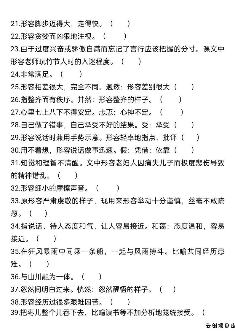 五升六年级语文暑假衔接词语积累-六上语文小岚4个月前更新关注私信093757五升六年级语文暑假衔接词语积累-六上语文此内容为付费阅读,请付费后查看云创币 6年费会员免费终身会员免费立即购买您当前未登录!建议登陆后购买,可保存购买订单付费阅读已售 45 ——预览已结束,还剩8页未读——开通会员后可免费下载高清完整文档 课程下载: 此处内容已隐藏,请付费后查看 声明 1 本站名称: 云创项目库 2 本站网址:vip.yunchuangku.com 3 本站内容均转载于互联网,仅供大家学习与参考,如有侵权,请联系站长进行删除处理。 4 本站一切资源不代表本站立场,并不代表本站赞同其观点和对其真实性负责。 5 本站一律禁止以任何方式发布或转载任何违法的相关信息,访客发现请向站长举报。 6 本站附件资源、教程等内容如因时效原因失效或不可用,请评论区留言或联系站长及时更新。 © 版权声明本站内容均转载于互联网,并不代表云创项目库立场。如若本站内容侵犯了原著者的合法权益,可联系我们进行处理!THE END六年级语文 喜欢就支持一下吧点赞57 分享QQ空间微博QQ好友海报分享复制链接收藏