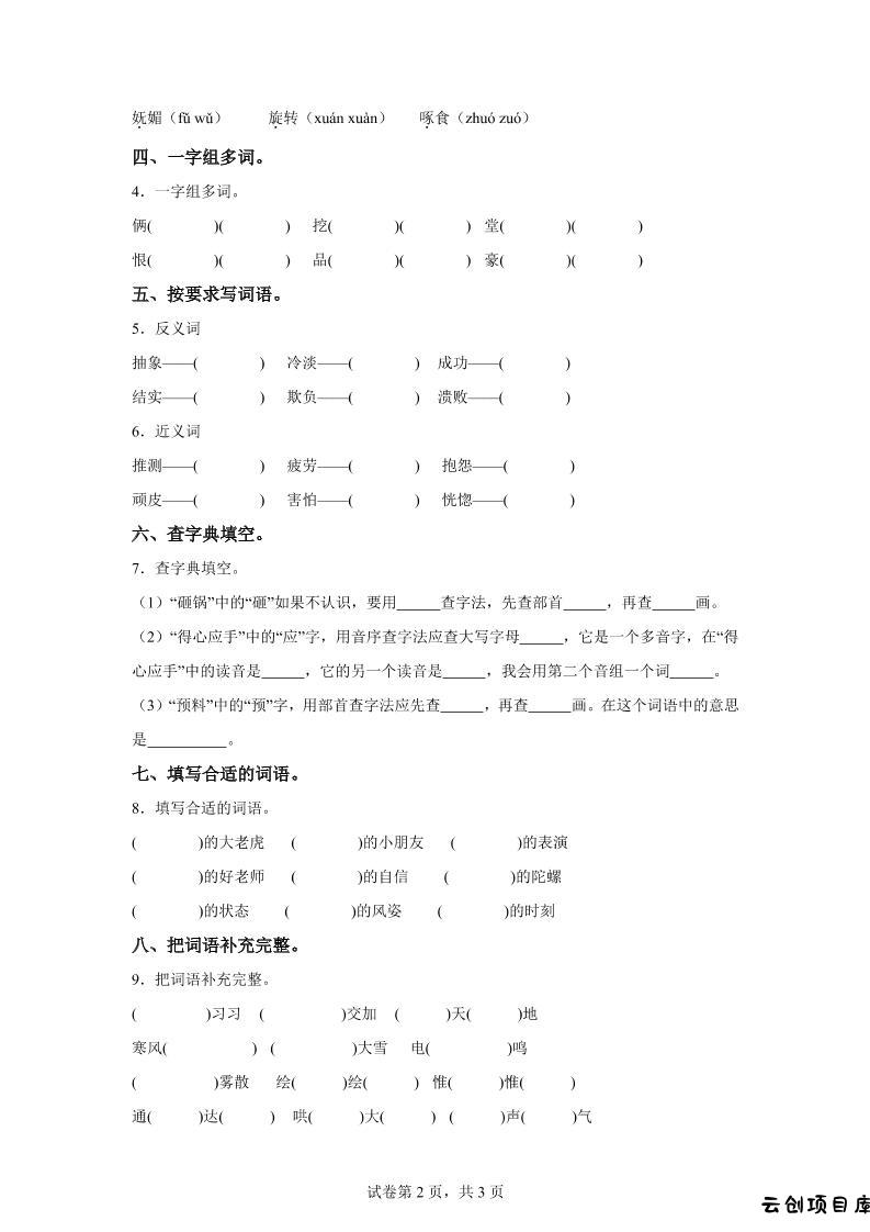 统编版语文四年级上册第六单元字词专项练小岚4个月前更新关注私信0116958统编版语文四年级上册第六单元字词专项练此内容为付费阅读,请付费后查看云创币 6年费会员免费终身会员免费立即购买您当前未登录!建议登陆后购买,可保存购买订单付费阅读已售 57 ——预览已结束,还剩8页未读——开通会员后可免费下载高清完整文档 课程下载: 此处内容已隐藏,请付费后查看 声明 1 本站名称: 云创项目库 2 本站网址:vip.yunchuangku.com 3 本站内容均转载于互联网,仅供大家学习与参考,如有侵权,请联系站长进行删除处理。 4 本站一切资源不代表本站立场,并不代表本站赞同其观点和对其真实性负责。 5 本站一律禁止以任何方式发布或转载任何违法的相关信息,访客发现请向站长举报。 6 本站附件资源、教程等内容如因时效原因失效或不可用,请评论区留言或联系站长及时更新。 © 版权声明本站内容均转载于互联网,并不代表云创项目库立场。如若本站内容侵犯了原著者的合法权益,可联系我们进行处理!THE END四年级语文 喜欢就支持一下吧点赞58 分享QQ空间微博QQ好友海报分享复制链接收藏