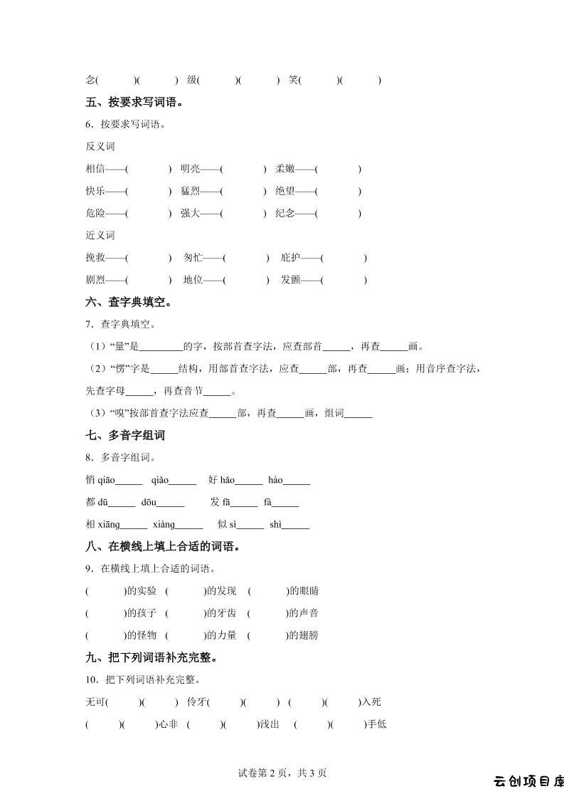 统编版语文四年级上册第五单元字词专项练小岚4个月前更新关注私信0104665统编版语文四年级上册第五单元字词专项练此内容为付费阅读,请付费后查看云创币 6年费会员免费终身会员免费立即购买您当前未登录!建议登陆后购买,可保存购买订单付费阅读已售 47 ——预览已结束,还剩8页未读——开通会员后可免费下载高清完整文档 课程下载: 此处内容已隐藏,请付费后查看 声明 1 本站名称: 云创项目库 2 本站网址:vip.yunchuangku.com 3 本站内容均转载于互联网,仅供大家学习与参考,如有侵权,请联系站长进行删除处理。 4 本站一切资源不代表本站立场,并不代表本站赞同其观点和对其真实性负责。 5 本站一律禁止以任何方式发布或转载任何违法的相关信息,访客发现请向站长举报。 6 本站附件资源、教程等内容如因时效原因失效或不可用,请评论区留言或联系站长及时更新。 © 版权声明本站内容均转载于互联网,并不代表云创项目库立场。如若本站内容侵犯了原著者的合法权益,可联系我们进行处理!THE END四年级语文 喜欢就支持一下吧点赞65 分享QQ空间微博QQ好友海报分享复制链接收藏