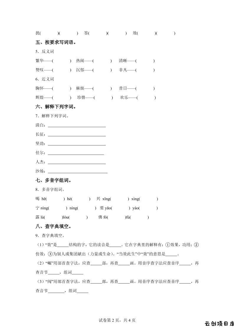 统编版语文四年级上册第七单元字词专项练小岚4个月前更新关注私信095875统编版语文四年级上册第七单元字词专项练此内容为付费阅读,请付费后查看云创币 6年费会员免费终身会员免费立即购买您当前未登录!建议登陆后购买,可保存购买订单付费阅读已售 51 ——预览已结束,还剩9页未读——开通会员后可免费下载高清完整文档 课程下载: 此处内容已隐藏,请付费后查看 声明 1 本站名称: 云创项目库 2 本站网址:vip.yunchuangku.com 3 本站内容均转载于互联网,仅供大家学习与参考,如有侵权,请联系站长进行删除处理。 4 本站一切资源不代表本站立场,并不代表本站赞同其观点和对其真实性负责。 5 本站一律禁止以任何方式发布或转载任何违法的相关信息,访客发现请向站长举报。 6 本站附件资源、教程等内容如因时效原因失效或不可用,请评论区留言或联系站长及时更新。 © 版权声明本站内容均转载于互联网,并不代表云创项目库立场。如若本站内容侵犯了原著者的合法权益,可联系我们进行处理!THE END四年级语文 喜欢就支持一下吧点赞75 分享QQ空间微博QQ好友海报分享复制链接收藏
