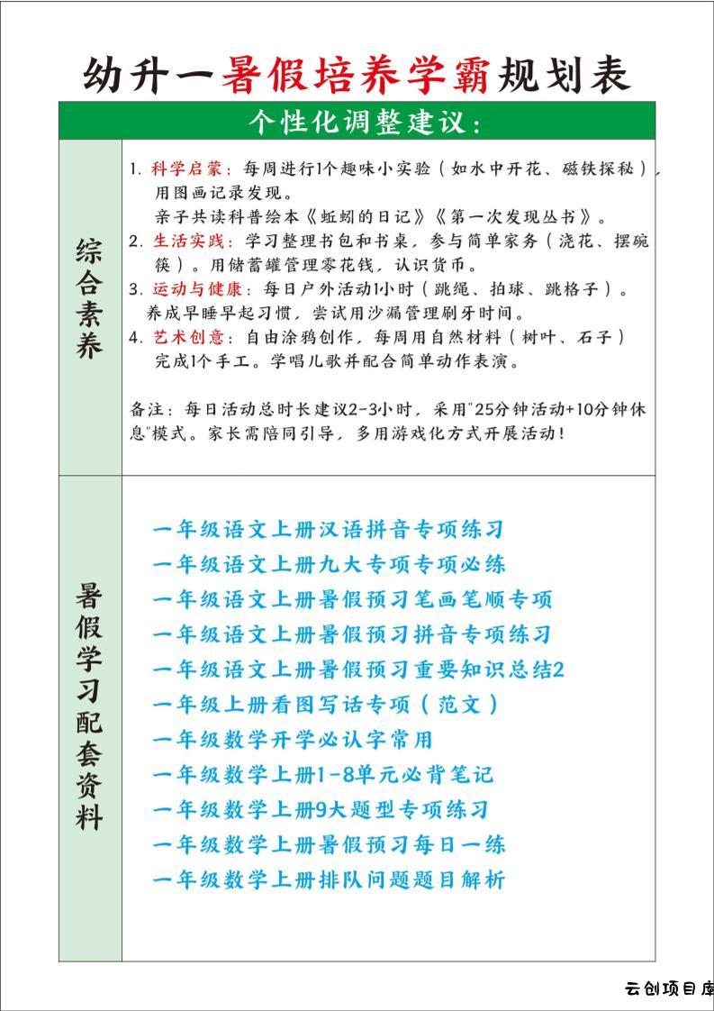 幼升一暑假培养学霸规划表-一上语文小岚4个月前更新关注私信091764幼升一暑假培养学霸规划表-一上语文此内容为付费阅读,请付费后查看云创币 6年费会员免费终身会员免费立即购买您当前未登录!建议登陆后购买,可保存购买订单付费阅读已售 45 ——预览已结束,还剩1页未读——开通会员后可免费下载高清完整文档 课程下载: 此处内容已隐藏,请付费后查看 声明 1 本站名称: 云创项目库 2 本站网址:vip.yunchuangku.com 3 本站内容均转载于互联网,仅供大家学习与参考,如有侵权,请联系站长进行删除处理。 4 本站一切资源不代表本站立场,并不代表本站赞同其观点和对其真实性负责。 5 本站一律禁止以任何方式发布或转载任何违法的相关信息,访客发现请向站长举报。 6 本站附件资源、教程等内容如因时效原因失效或不可用,请评论区留言或联系站长及时更新。 © 版权声明本站内容均转载于互联网,并不代表云创项目库立场。如若本站内容侵犯了原著者的合法权益,可联系我们进行处理!THE END一年级语文 喜欢就支持一下吧点赞64 分享QQ空间微博QQ好友海报分享复制链接收藏