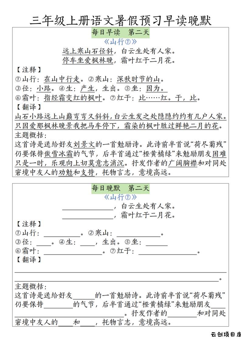 三上语文必背内容早读晚默小岚3个月前更新关注私信089375三上语文必背内容早读晚默此内容为付费阅读,请付费后查看云创币 6年费会员免费终身会员免费立即购买您当前未登录!建议登陆后购买,可保存购买订单付费阅读已售 59 ——预览已结束,还剩15页未读——开通会员后可免费下载高清完整文档 课程下载: 此处内容已隐藏,请付费后查看 声明 1 本站名称: 云创项目库 2 本站网址:vip.yunchuangku.com 3 本站内容均转载于互联网,仅供大家学习与参考,如有侵权,请联系站长进行删除处理。 4 本站一切资源不代表本站立场,并不代表本站赞同其观点和对其真实性负责。 5 本站一律禁止以任何方式发布或转载任何违法的相关信息,访客发现请向站长举报。 6 本站附件资源、教程等内容如因时效原因失效或不可用,请评论区留言或联系站长及时更新。 © 版权声明本站内容均转载于互联网,并不代表云创项目库立场。如若本站内容侵犯了原著者的合法权益,可联系我们进行处理!THE END三年级语文 喜欢就支持一下吧点赞75 分享QQ空间微博QQ好友海报分享复制链接收藏