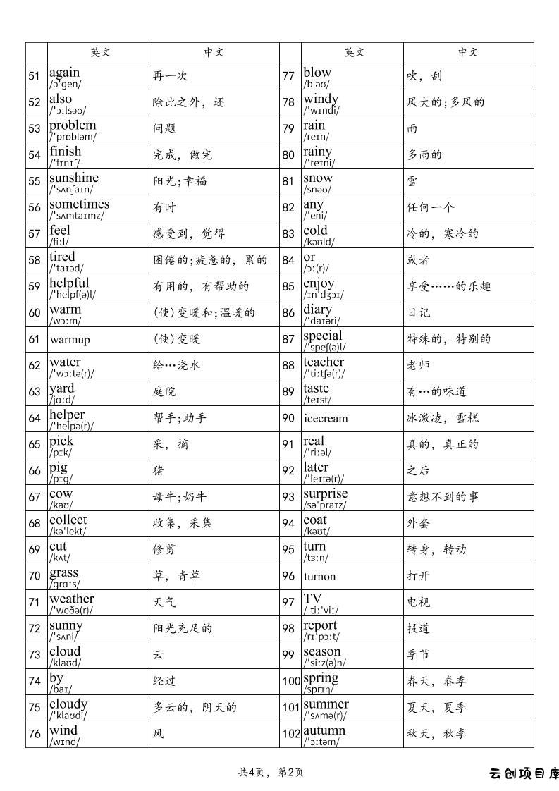 2025秋四上英语外研版(三起)单词表小岚3个月前更新关注私信01061712025秋四上英语外研版(三起)单词表此内容为付费阅读,请付费后查看云创币 6年费会员免费终身会员免费立即购买您当前未登录!建议登陆后购买,可保存购买订单付费阅读已售 46 ——预览已结束,还剩2页未读——开通会员后可免费下载高清完整文档 课程下载: 此处内容已隐藏,请付费后查看 声明 1 本站名称: 云创项目库 2 本站网址:vip.yunchuangku.com 3 本站内容均转载于互联网,仅供大家学习与参考,如有侵权,请联系站长进行删除处理。 4 本站一切资源不代表本站立场,并不代表本站赞同其观点和对其真实性负责。 5 本站一律禁止以任何方式发布或转载任何违法的相关信息,访客发现请向站长举报。 6 本站附件资源、教程等内容如因时效原因失效或不可用,请评论区留言或联系站长及时更新。 © 版权声明本站内容均转载于互联网,并不代表云创项目库立场。如若本站内容侵犯了原著者的合法权益,可联系我们进行处理!THE END四年级英语 喜欢就支持一下吧点赞71 分享QQ空间微博QQ好友海报分享复制链接收藏