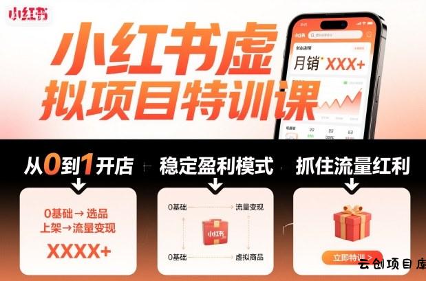 小红书虚拟项目特训课,帮你从0到1打造稳定盈利的店铺,抓住流量红利(更新9月)