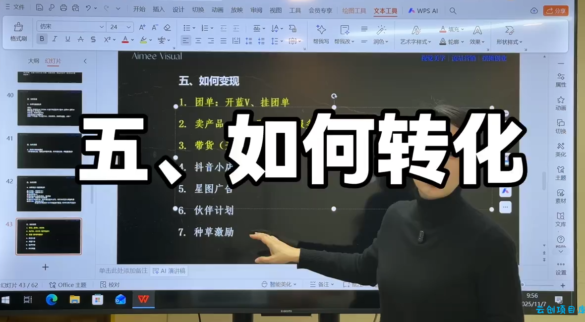 主要内容包括:短视频创作全流程,包括口播视频剪辑、违规规避技巧;详解直播实操,从直播伴侣使用到直播流程搭建。同时教授粉丝群创建、商品橱窗开通、短视频与直播带货上车,以及企业蓝V开通、团单上架与职人号搭建,全链路实操干货,助力新手快速掌握抖音运营技巧,实现从内容创作到商业转化的闭环。