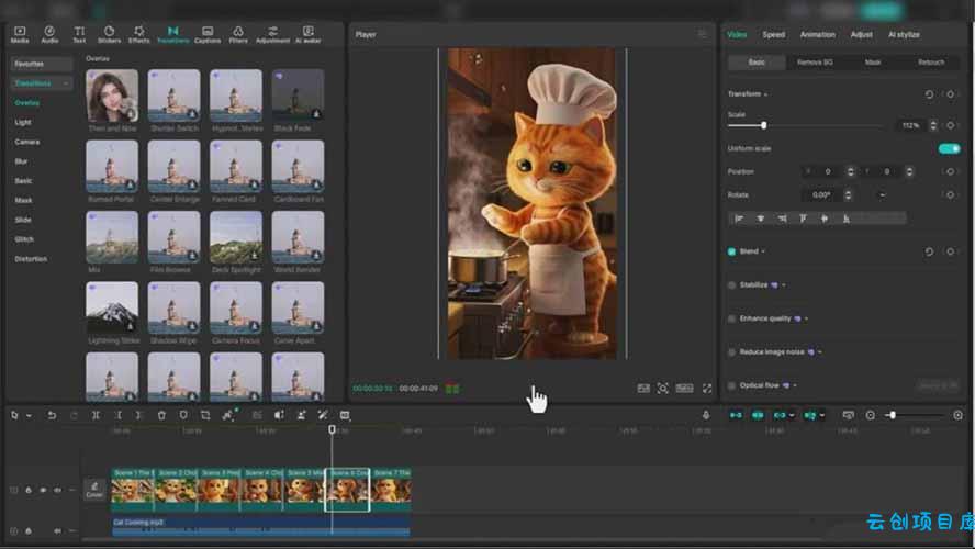 在Veo中组装您的猫冒险视频。