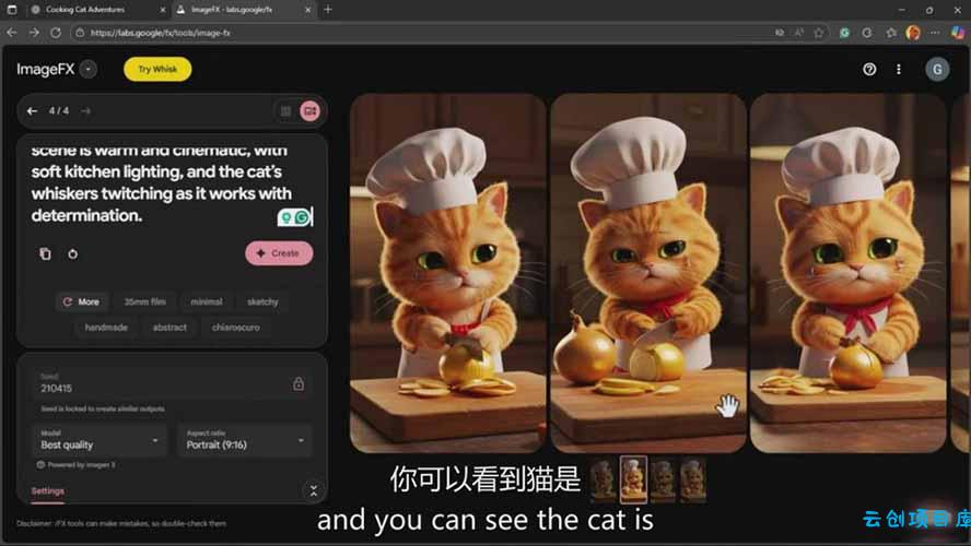 生成创意视频和图像提示有趣和迷人的猫冒险故事。