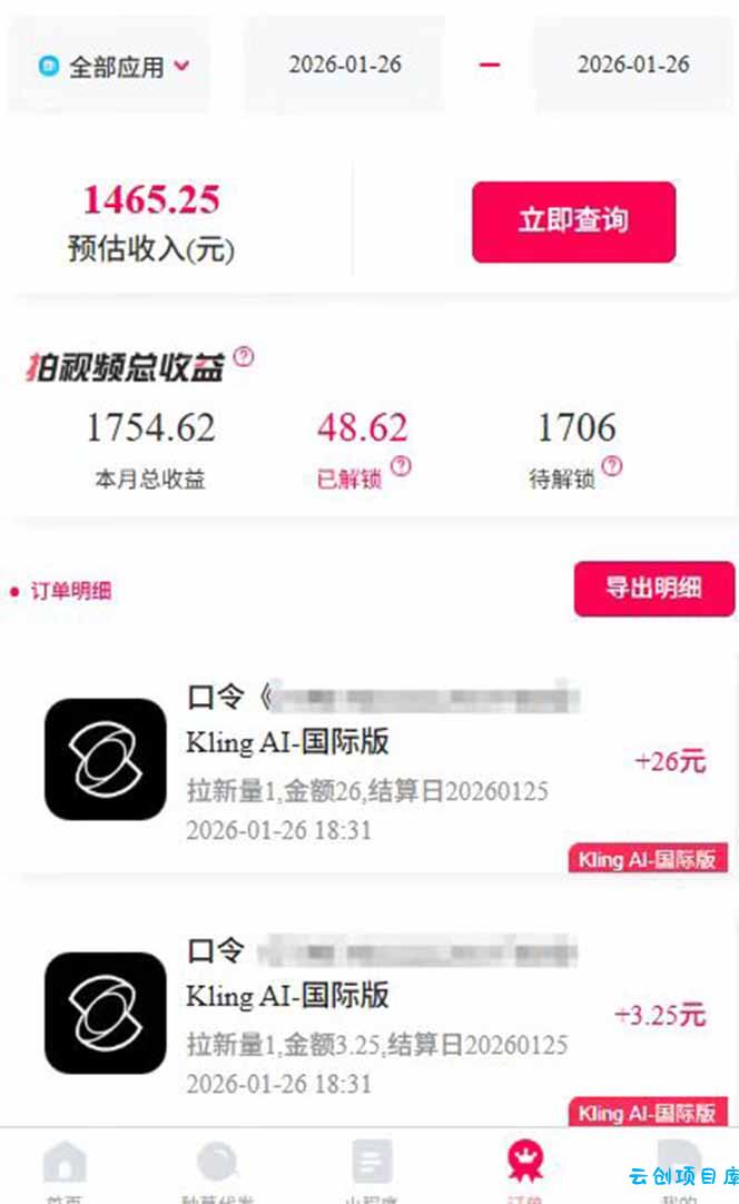 项目原理狠简单,我们做的是可灵AI软件拉新,只需要在三大平台发布一条短视频,有人下载就有收益。热门素材直接一键生成,不仅送你软件会员,还有独家工具给你用,纯小白一学就会,手机就能做。像去年我们玩的比较火的即梦AI,玩法类似,但是即梦现在市场接近饱和了,可灵刚开始推,市场很大,而且次日结算!可以说是做拉新里面结算最快的了,平台也成熟,可以放心去推广。按照我们测试的玩法每天爆单不停,一天稳定几百到几千甚至5位数都可能。目前一单最高28块左右,只要发视频就有保底5元起,国内国外都能做,咱们不说多,一天拉10单,至少就是三位数,按照我们的方法,不说日入过万,日入几千都是正常发挥。另外,平台其他赛道的拉新也都免费教你怎么玩,可选性太多了,能坚持做的,我们有好几个都日入过万直接爽爆了!