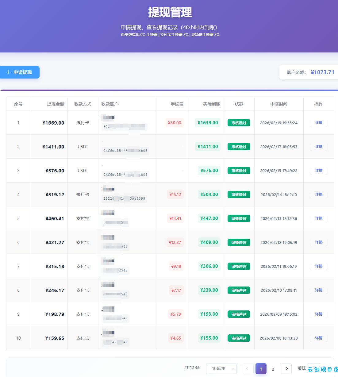 提现灵活:满10元即可提现,支付宝、银行卡,币安,实时到账。